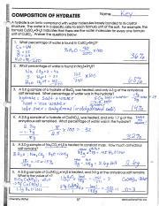 Molar mass of compounds 1. These water molecules can typically be removed through heating (a process called “dehydration”.). For this physical science worksheet, students participate in a lab that focuses on the composition of hydrates.