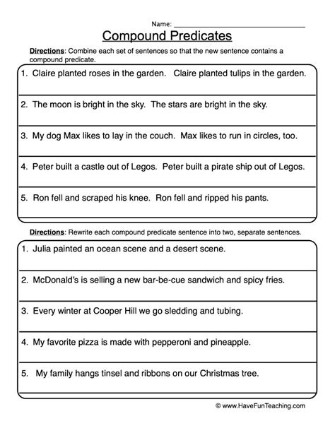 Web compound subjects and predicates directions: Web this resource includes six different printables that help students identify and use compound subjects and compound predicates by circling them, underlining them, answering. Web free printable compound predicates sentences worksheets to help students learn about subject and predicate.