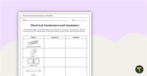 Web Use This Worksheet To Have Kids Test Different Materials To See If They Are Conductors Or Insulators.