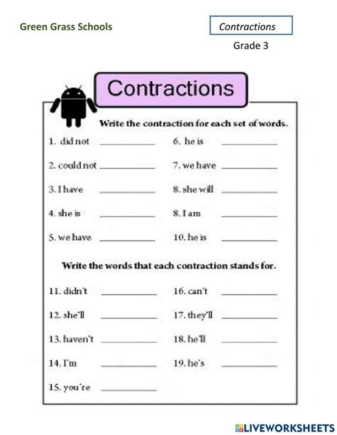 Web Third Grade Contractions Worksheets.