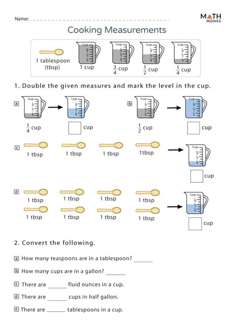 Cooking Math Worksheet. 4 tablespoons = 1/4 5. You can do the exercises online or download the worksheet as pdf.
